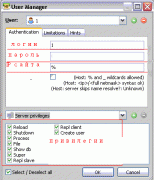 б)пишем логин, пароль, какому разрешить доступ с этого ИП(т.е. если поставите только ИП сайта,только сайт будет оперировать в вашей базе ) и привелегии для сайта(т.е. которые ему понадобятся для работы с базой.....у каждой обвязки разные...если понадобится постараюсь разузнать какие привелегии можно отключить)